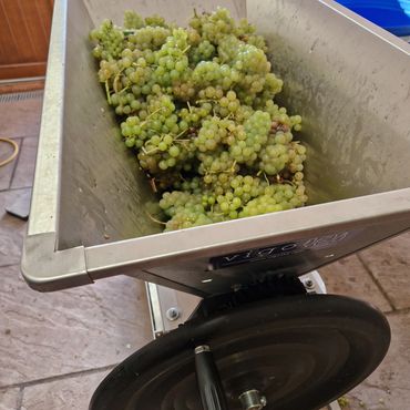 Our small onsite winery built in 2021 allows us to process our grapes on site. Converted from an old stable, it has all the facilities we need to run small batch quality wine production. Our winemaker Peter has been working on balancing the grapes we can produce, with the styles of wine we all like to drink.